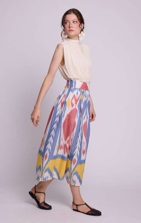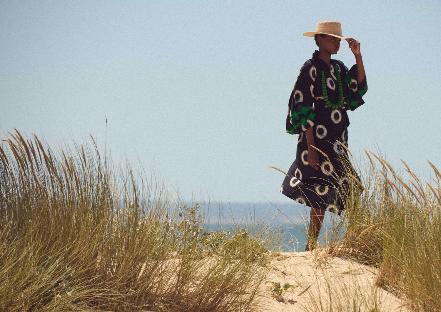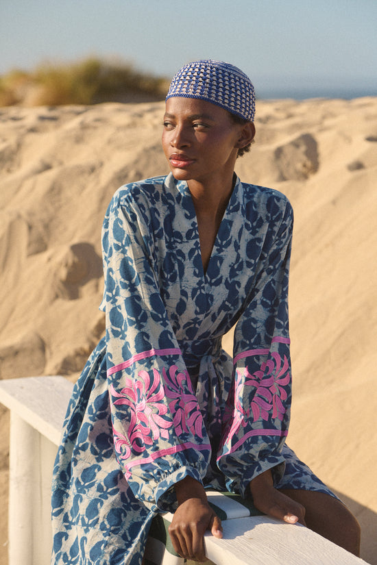 Rooted in Portugal, KLEED works with handloom ikat — an age-old technique where threads are dyed before weaving, creating patterns that feel organic and alive rather than printed on the surface. Guided by craft, natural fibres and considered production, each collection explores colour, texture and ease across a full wardrobe: kimonos, dresses, sets and lightweight layers made to move and breathe in heat. At its core, KLEED is a dialogue between tradition and modern life — textile heritage translated into pieces you can truly live in.