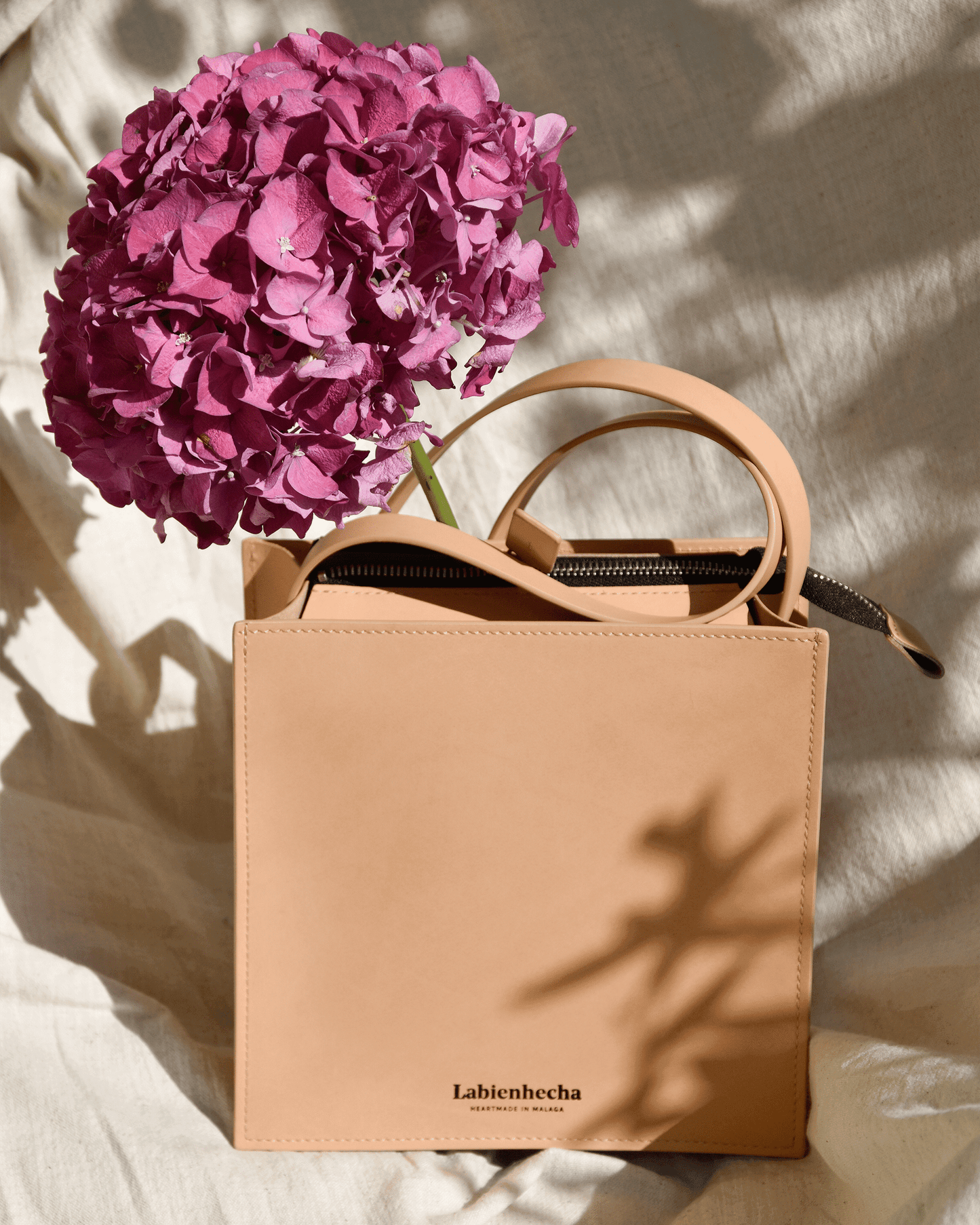 Sofía Hija has a small size but almost medium. You will be amazed at its capacity and at how you can organize everything inside. Phone, purse, sunglasses, tissues… and everything safe thanks to its zip fastener.